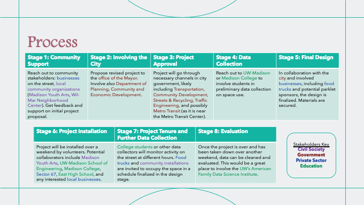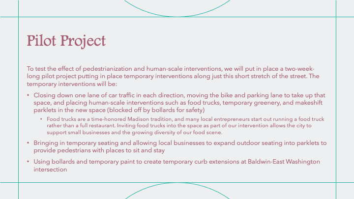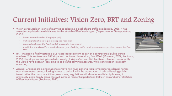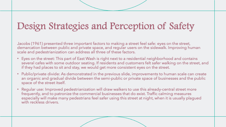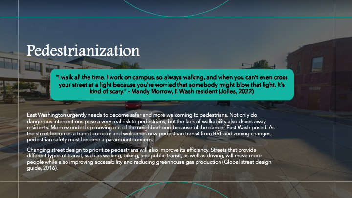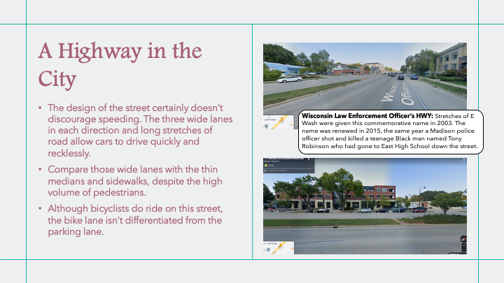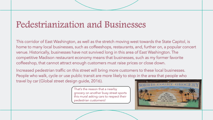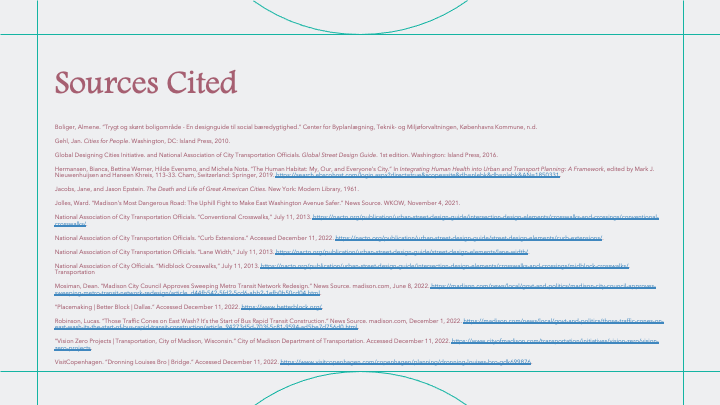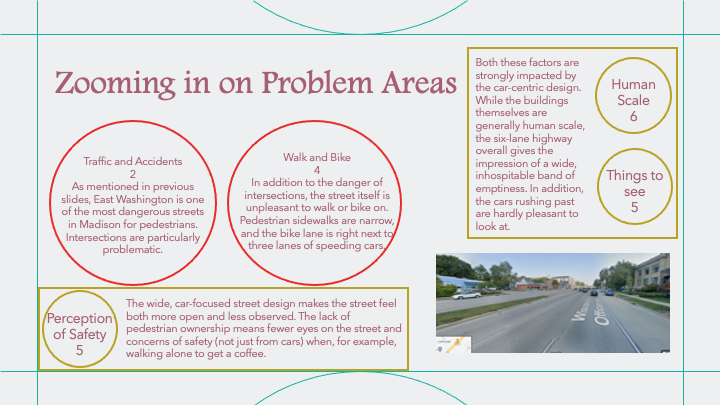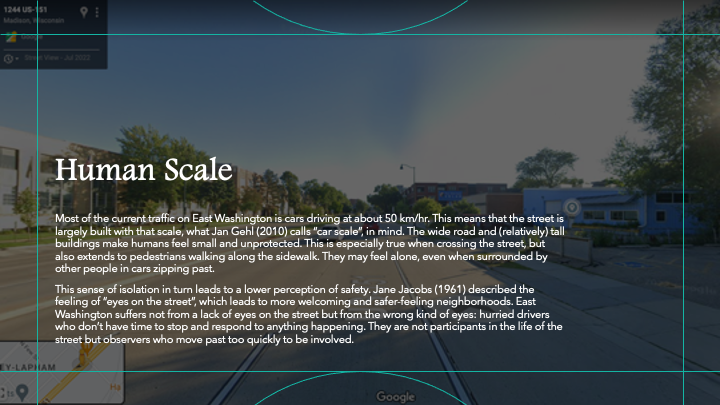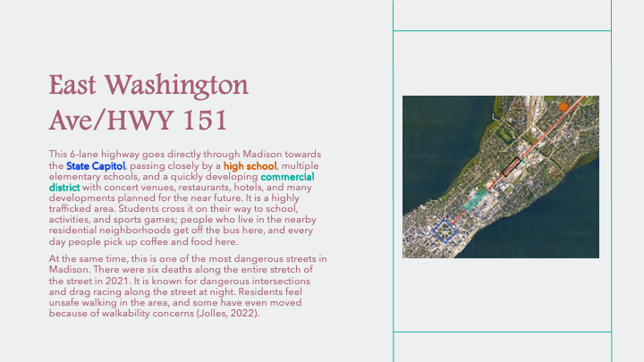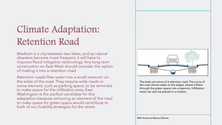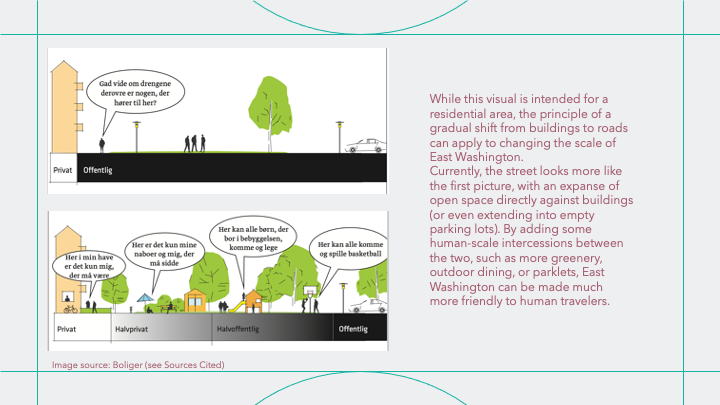 This proposal for design interventions on East Washington in Madison, WI uses an analysis of Jan Gehl’s principles of livability, the conditions of the street and neighborhood, and potential stakeholders to explore opportunities for improving pedestrian experience and safety. It was completed as part of Bettina Werner’s Urban Livability class at DIS Copenhagen.
